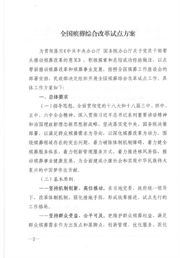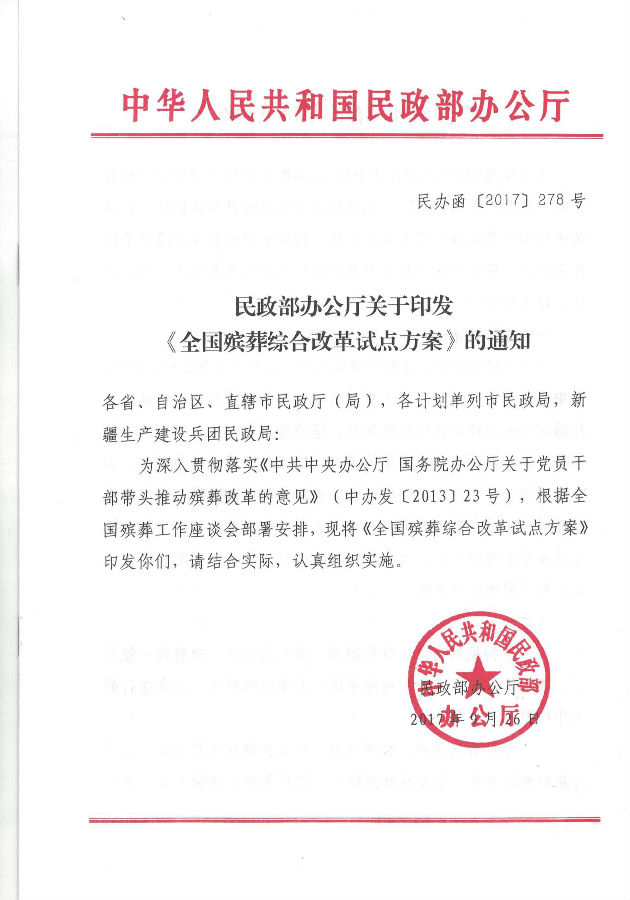 民政部辦公廳關于印發《全國殯葬綜合改革試點方案》的通知