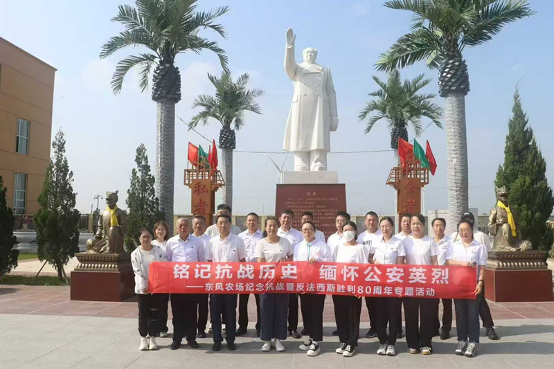 大慶東風農場紀念抗戰暨反法西斯勝利80周年專題活動20余人,于9月5日上午來到天堂墓園共同研學。并集體拜謁毛主席漢白玉像,祭祀大慶公安英烈!