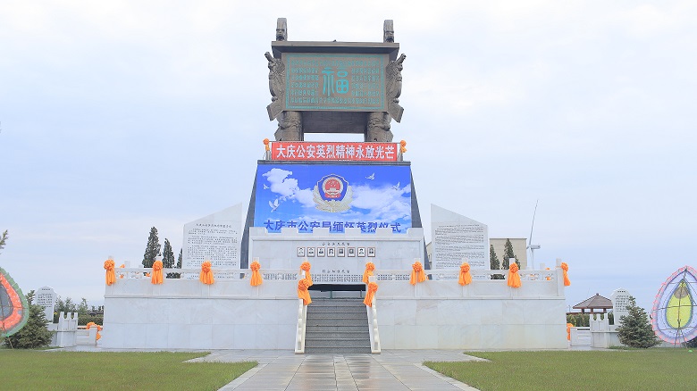 大慶公安英烈園座落于大慶市讓胡路區天堂墓園內,由天堂墓園有限公司獨資捐建,整體設計以“肅穆、莊重、簡潔、大氣”為總基調,將大慶市公安局和公安英烈有關信息融入設計理念之中,體現公安特點,突出紀念意義。英烈園位于整個墓園的中軸線上,整體呈南北向的長方形形狀,由墓前廣場、主體形象墻和英烈墓地三部分組成,英烈墓地560平。四周環種柏樹70棵,代表建局以來因公犧牲的70位民警,寓意英烈精神松柏長青。